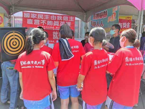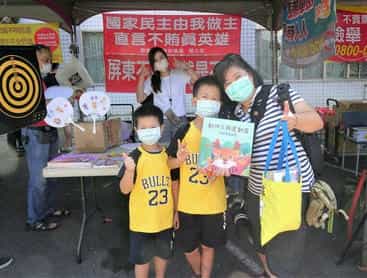 屏東縣政府第24屆「攜手向廉 擁抱陽光 3對3街頭籃球賽」反貪園遊會-參賽隊伍前來攤位參加廉政遊戲