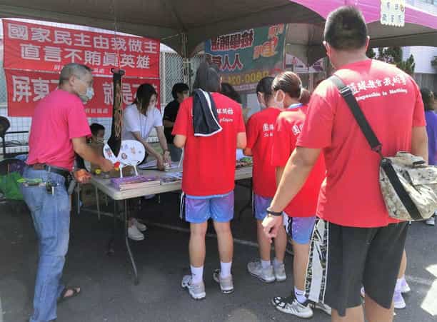屏東縣政府第24屆「攜手向廉 擁抱陽光 3對3街頭籃球賽」反貪園遊會-參賽者排隊回答廉政問題