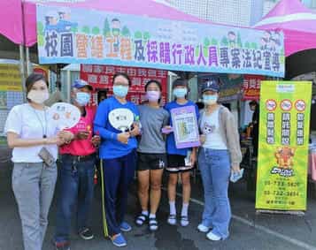 屏東縣政府第24屆「攜手向廉 擁抱陽光 3對3街頭籃球賽」反貪園遊會-屏東縣政府政風處卓玉真科長(最左方白衣者)與親友團合影