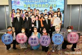 彰化縣成立「大埔截水溝堤岸道路拓寬工程採購廉政平臺」,廉政志工表演揭開活動序幕-廉政志工與首長合影