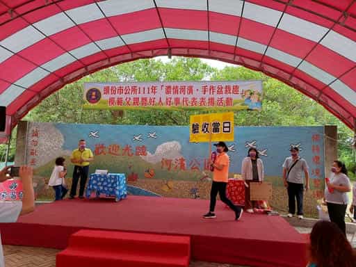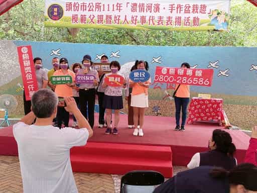 苗廉政志工協助辦理「111年濃情河濱·手作盆栽趣」廉政宣導活動-廉政志工話劇表演宣導民眾亦留影