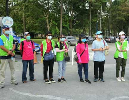 翻轉舊地景,共創廉潔新風貌-與廉相約在屏東縣民公園-屏東縣政府廉政志工於縣民公園入口合影