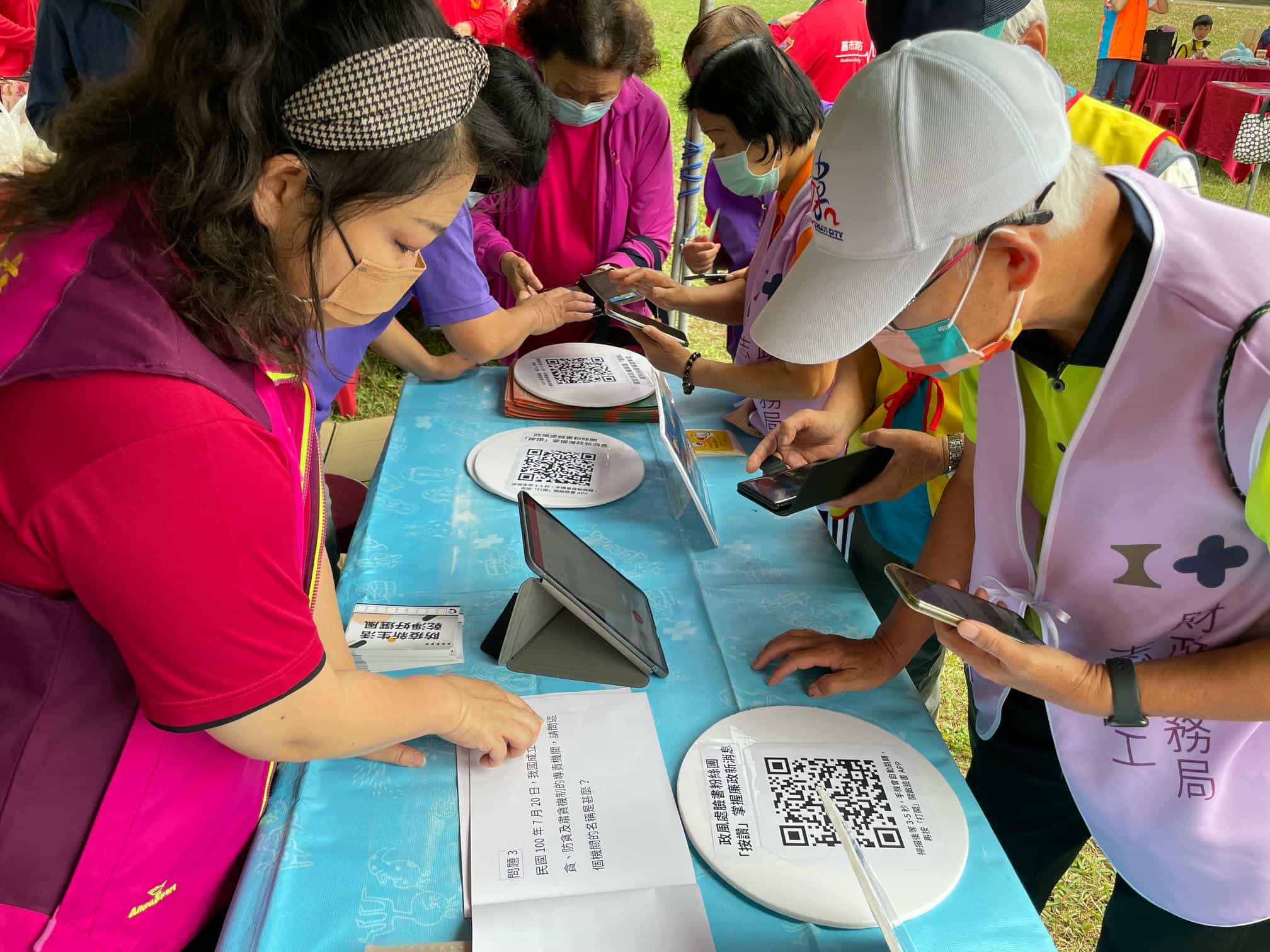 嘉市府廉政志工隊參與國際志工日活動,設計廉政有獎徵答遊戲互動熱烈-民眾專心做答