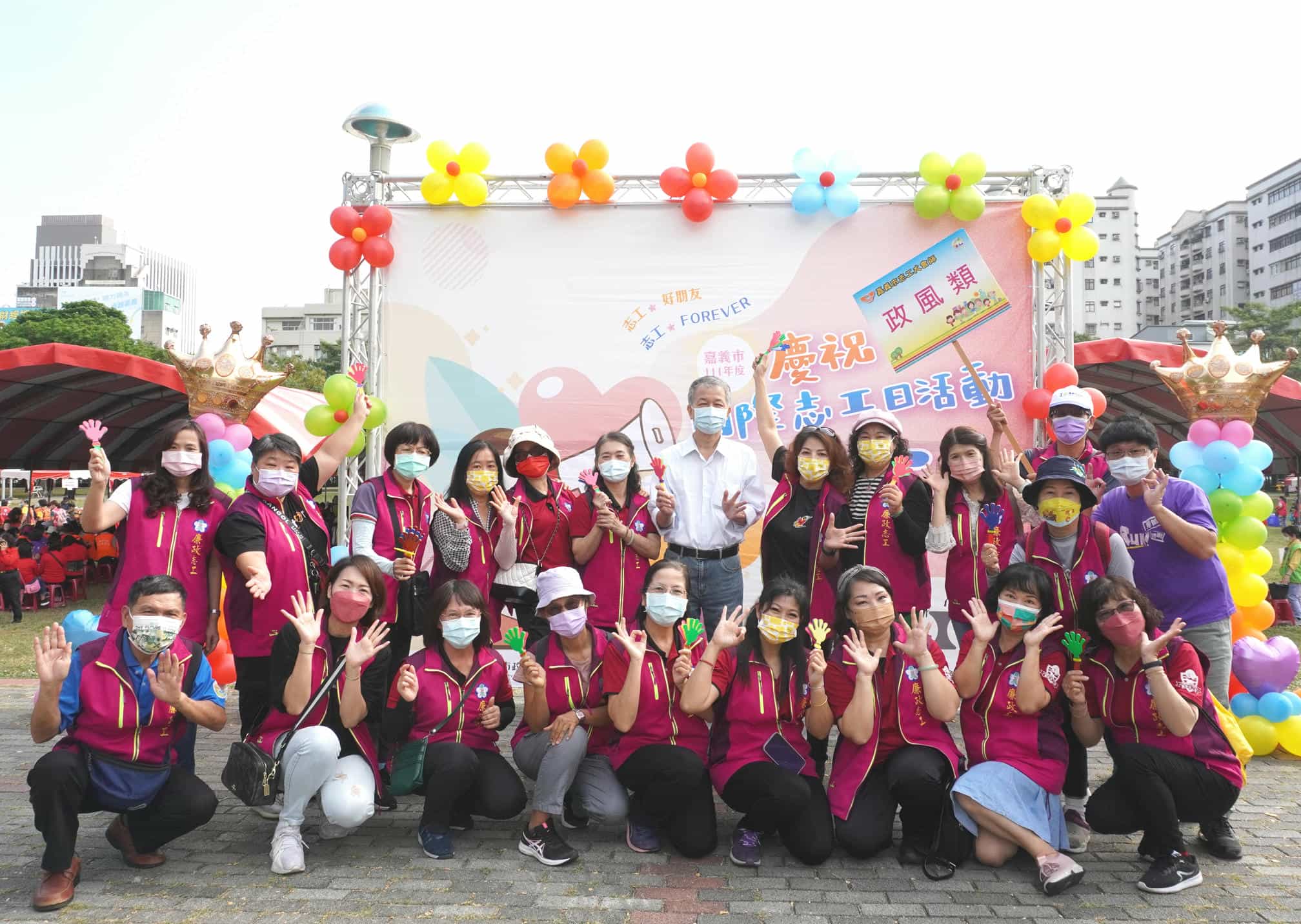 嘉市府廉政志工隊參與國際志工日活動,設計廉政有獎徵答遊戲互動熱烈-大合照