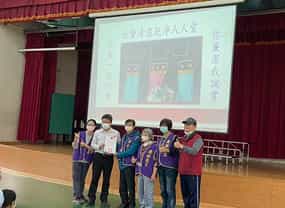 臺北市政府政風處廉政志工協助辦理「112年度廉潔教育宣導活動」-臺北市政府政風處廉政志工於西門國小宣導「黑冠現形記」並與現場教師合影