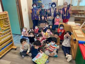 臺北市政府政風處廉政志工協助辦理「112年度廉潔教育宣導活動」-臺北市政府政風處廉政志工與私立蘊品幼兒園學童合影