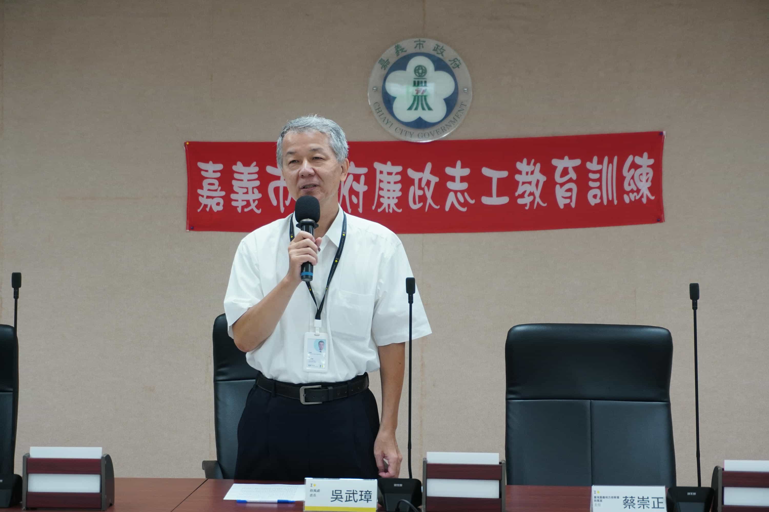 嘉市府政風處辦理廉政志工公園環境巡查訓練 充實知能護環境-嘉義市政府政風處長吳武璋致詞
