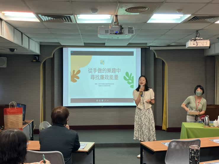 「觸動廉政能量.探索廉能新知」臺灣高雄地方法院112年聯合廉政志工專業訓練圓滿落幕-由臺中市政府工務局養護工程處政風室吳芳如主任傳遞廉政能量予參訓同仁。