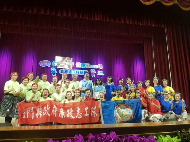 金門縣政府廉政志工隊 以舞蹈Show 創意行銷反貪反賄選-參與舞蹈競賽的廉政志工於完成準備後合影-1