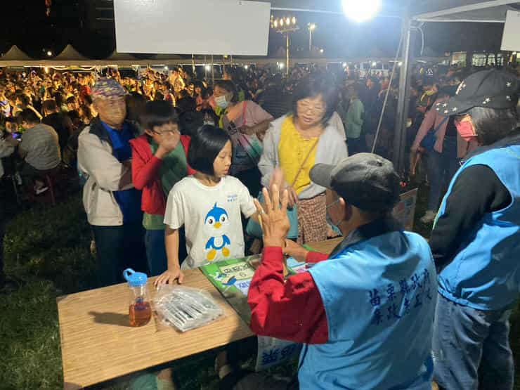 竹南運動公園「栗栗在目星空電影院COOL一夏」反貪及反賄選宣導-志工與民眾宣導