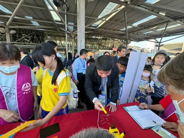 基隆市政府政風處結合「臺灣科普環島列車」系列宣導活動-副署長蒞臨攤位與小朋友及廉政志工互動
