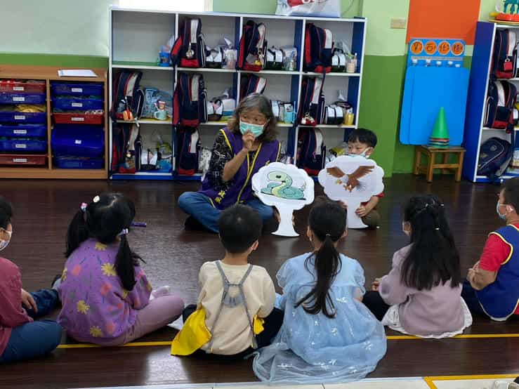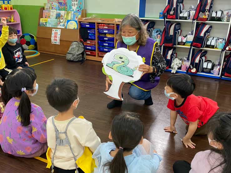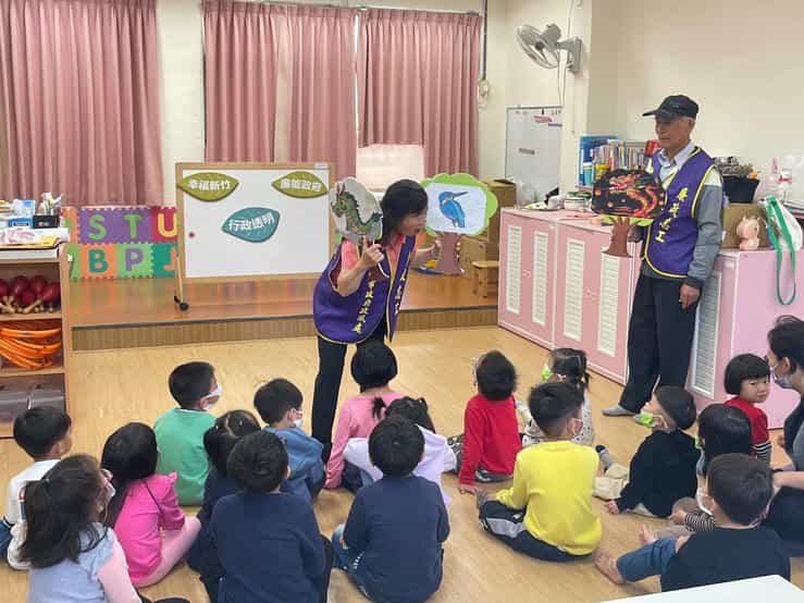 新竹市政府政風處攜手廉政志工辦理「廉手做燈籠」反貪宣導活動-孩童專心聽故事