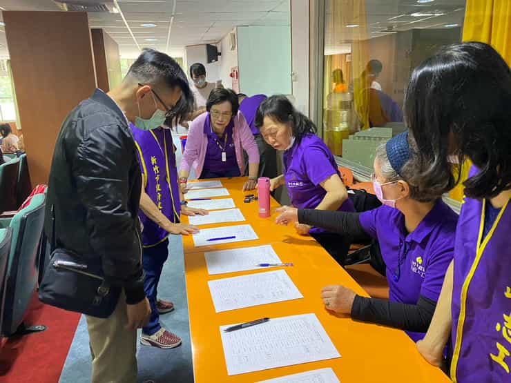 新竹市政府政風處辦理廉政志工專業訓練-「採購廉政倫理與工程實務探討」-廉政志工協助來賓簽到
