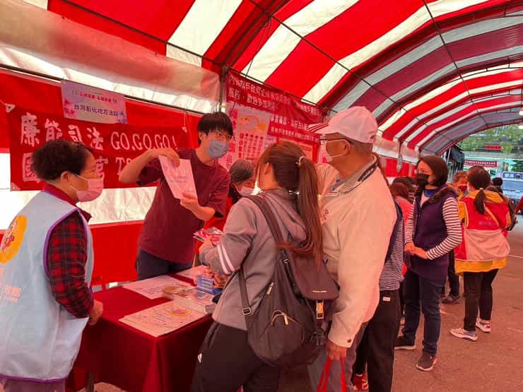 臺灣彰化地方法院政風室辦理「花現蔬果、永靖有愛」 廉政宣導活動-政風室人員運用自製之摸球箱及題卡與民眾進行廉政有獎徵答,民眾踴躍參與!
