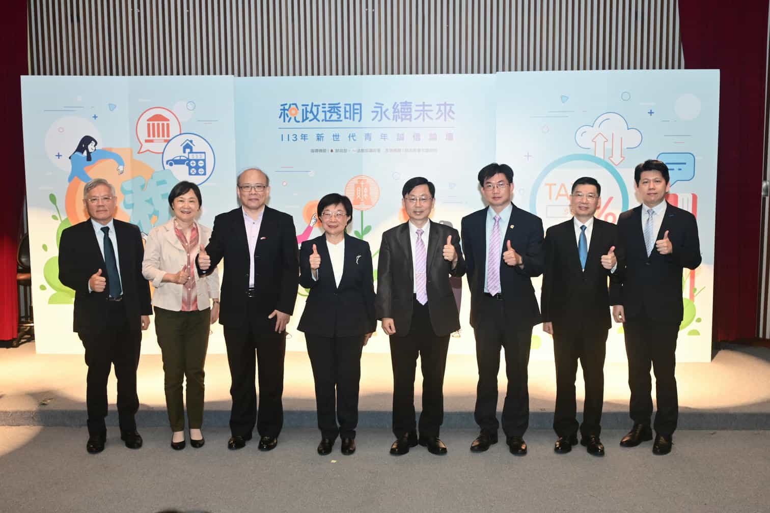 財政部臺北國稅局113年新世代青年誠信論壇「稅政透明·永續未來」-財政部李次長、法務部廉政署莊署長與長官貴賓珍貴合影畫面