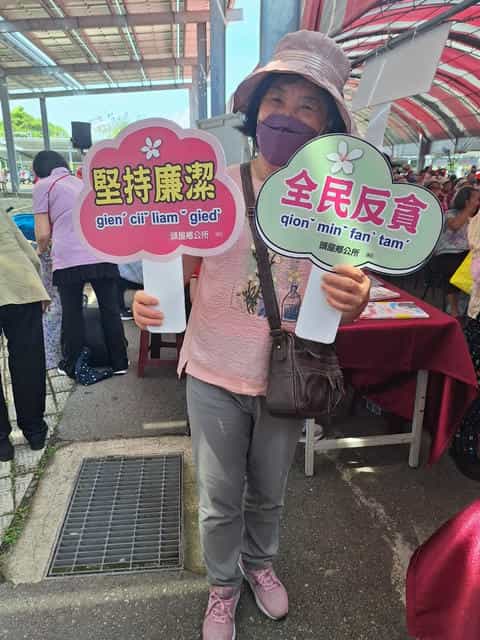 苗廉志工一同行活躍馨樂齡-民眾手持宣導標語