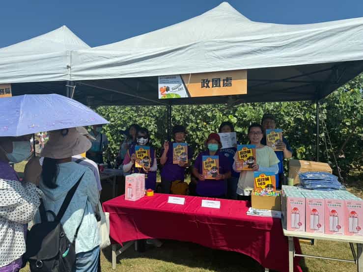 新竹市政府廉政志工協助辦理「2024國際風箏節」反貪宣導活動-志工與攤位合影