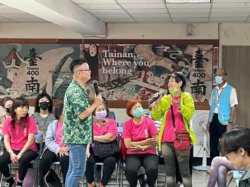 臺南市府政風處攜手臺南地檢署 唱出愛情與投資詐騙陷阱創意守護銀髮族-廉政志工協助以活潑帶動唱方式宣導,與民眾同樂
