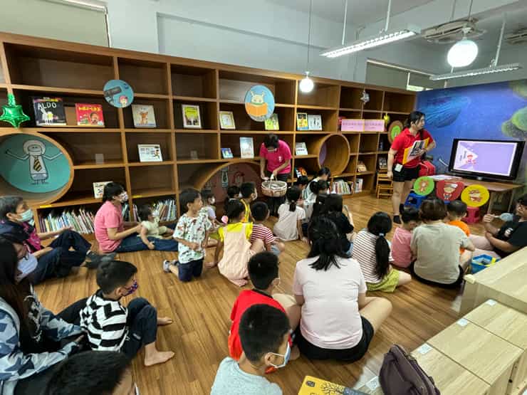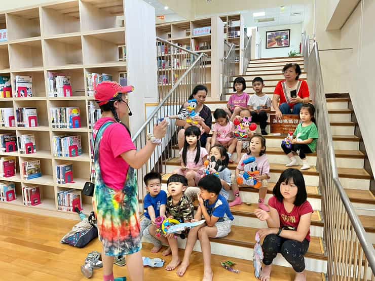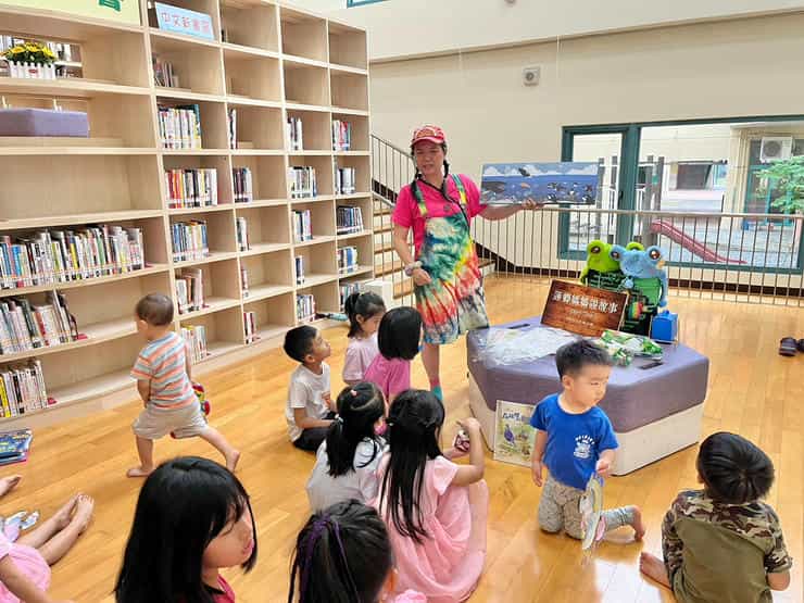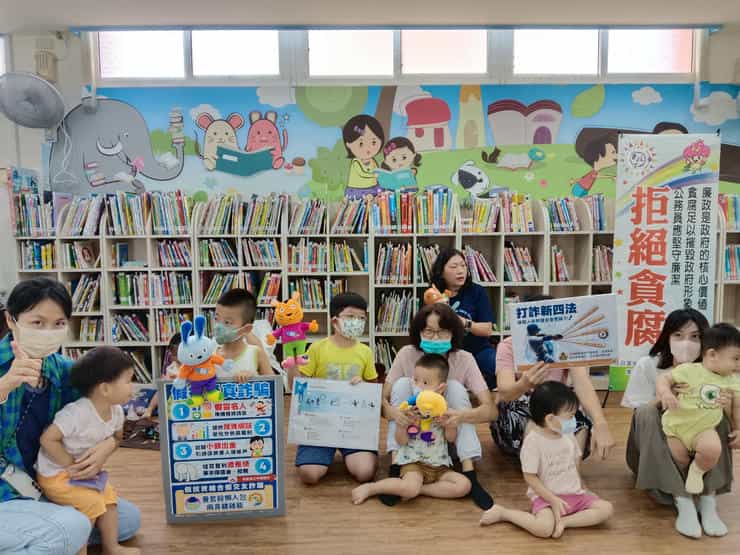 臺南志工校園說故事-讓廉潔誠信意識向下扎根,孕育出廉潔誠信的幼苗-廉政志工於本市玉井區圖書館協助老師以廉政繪本說故事及扮演劇中人物