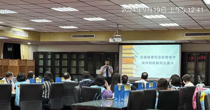 「113年司法院南區司法、廉政志工專業訓練」 邀請南部各法院志工參加 -特別邀請臺灣高等法院高雄分院李法官東柏擔任「防詐、反詐,大家一起來」課程講座。