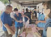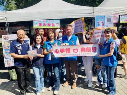 苗廉志工「花啦嗶啵老嫩大細嘉年華」宣導倡廉-廉政志工與民眾合影宣導