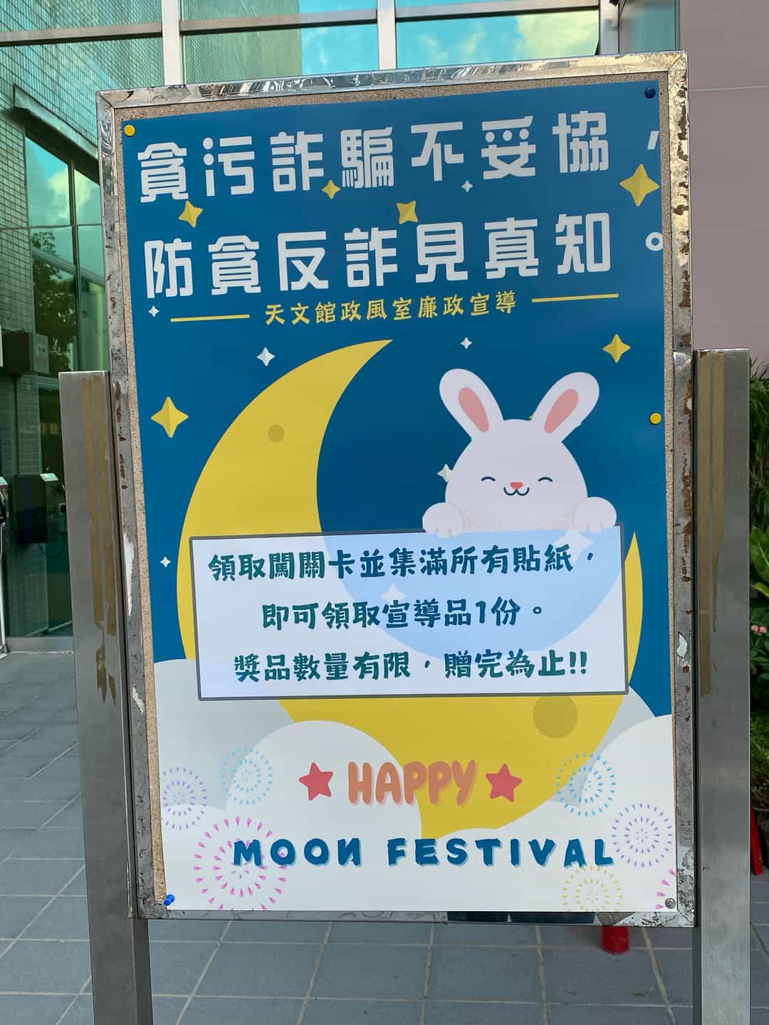 113年「賞月樂中秋」中秋節反貪宣導活動-天文館政風室製作防貪宣導海報並宣導。