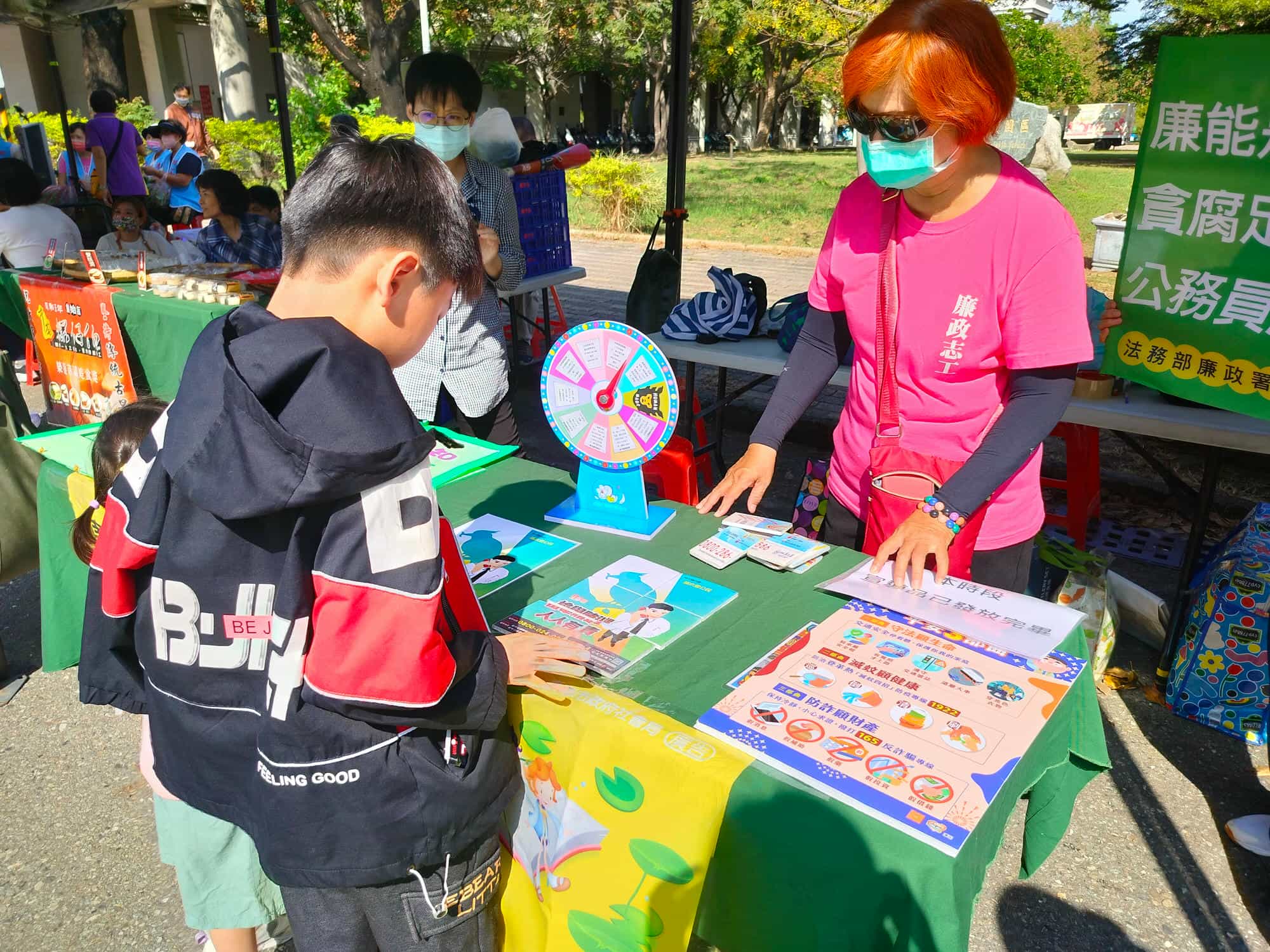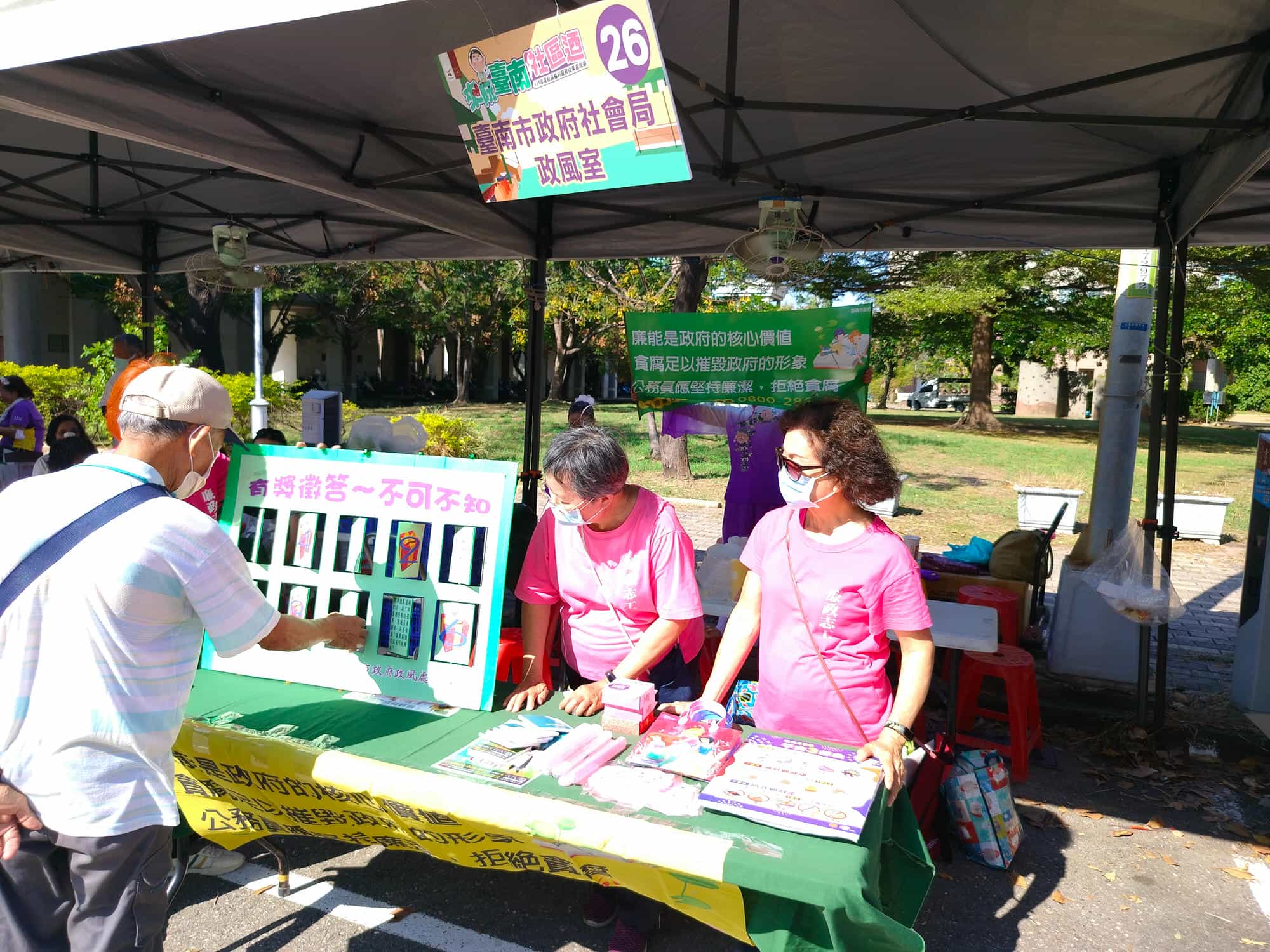 「來阮台南社區迺」服務成果嘉年華,臺南市政府政風處廉政志工表演暨宣導-廉政志工以有獎徵答方式向民眾宣導反貪腐